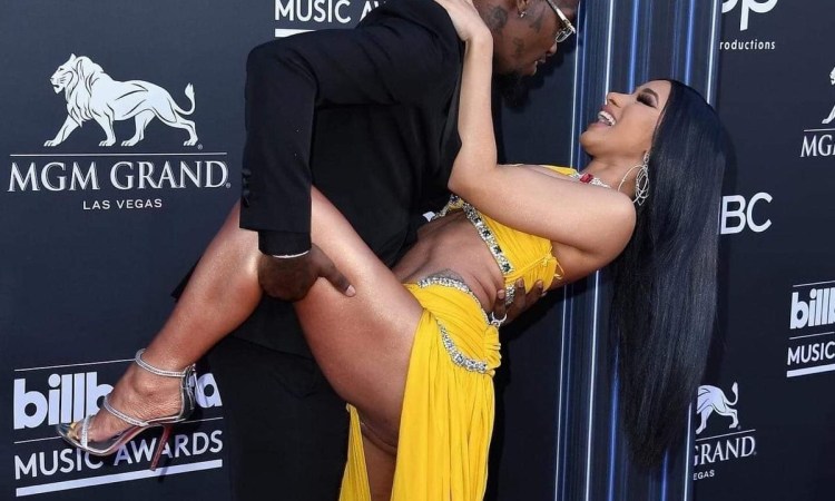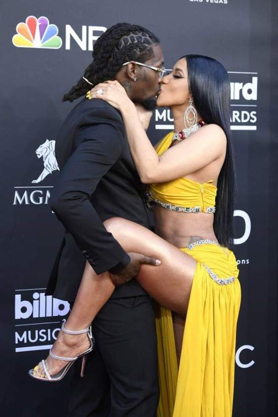 The US rapper and her boyfriend Offset were on the red carpet to share some cozy moments.